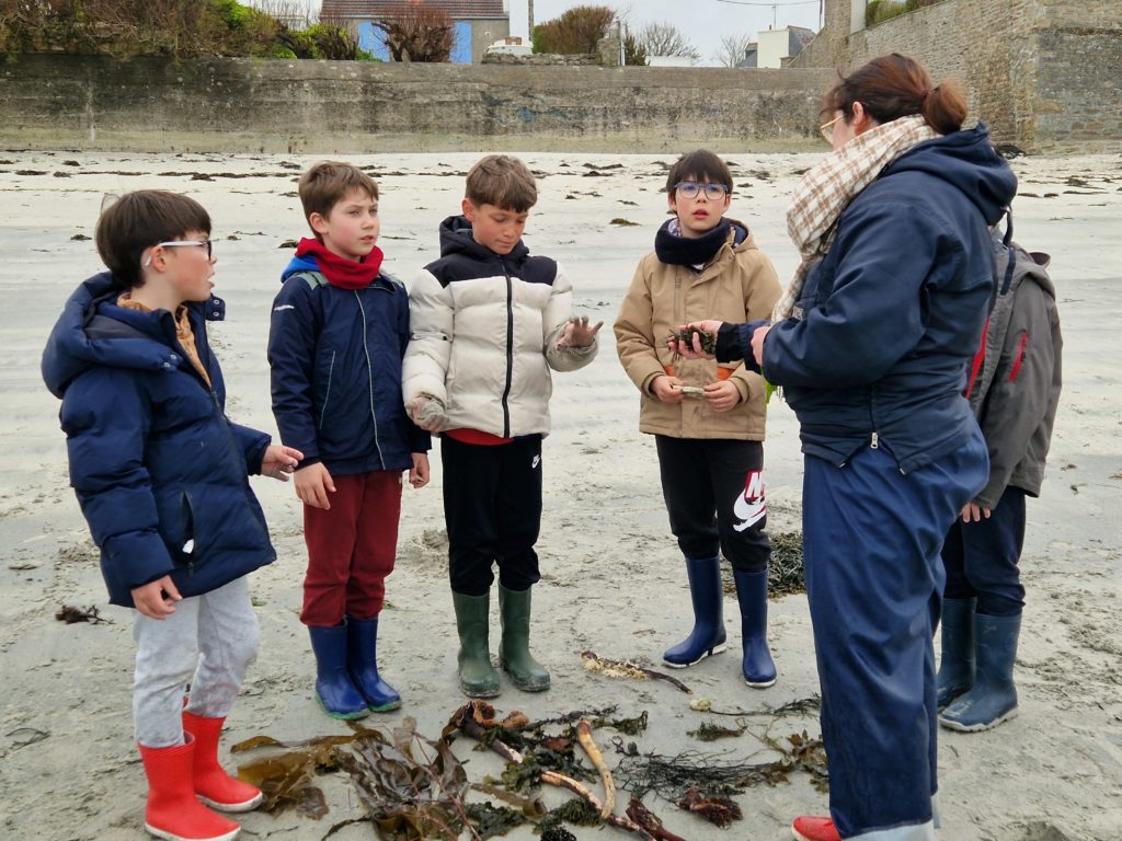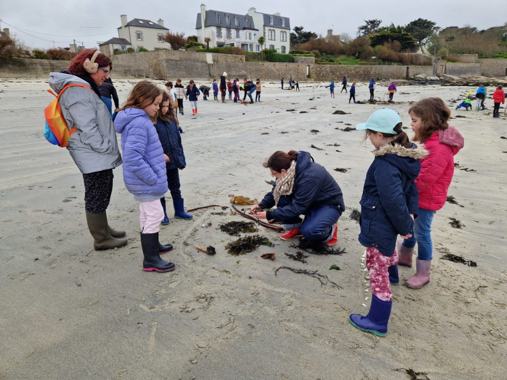 Lundi 30 mars et mardi 31 mars, les élèves des trois classes de CE1-CE2, CE2-CM1 et CM2 se sont rendus à Portsall pour une sortie sur l’estran de la plage de Kerdéniel.