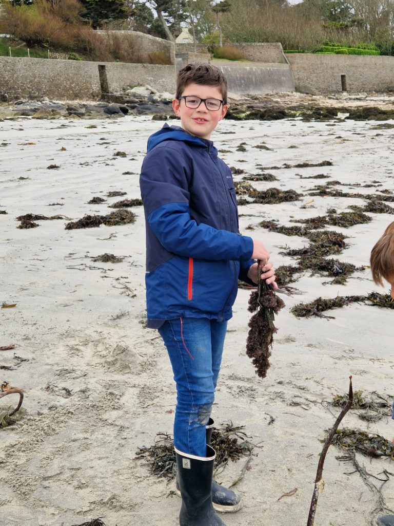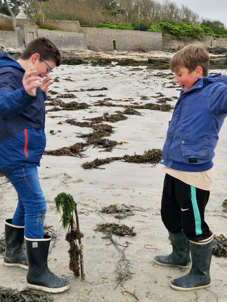 Nous avons trouvé toutes sortes d’algues vertes, brunes et rouges que nous avons rassemblées dans notre “carré de groupe”. Certains se sont même essayés au land art.