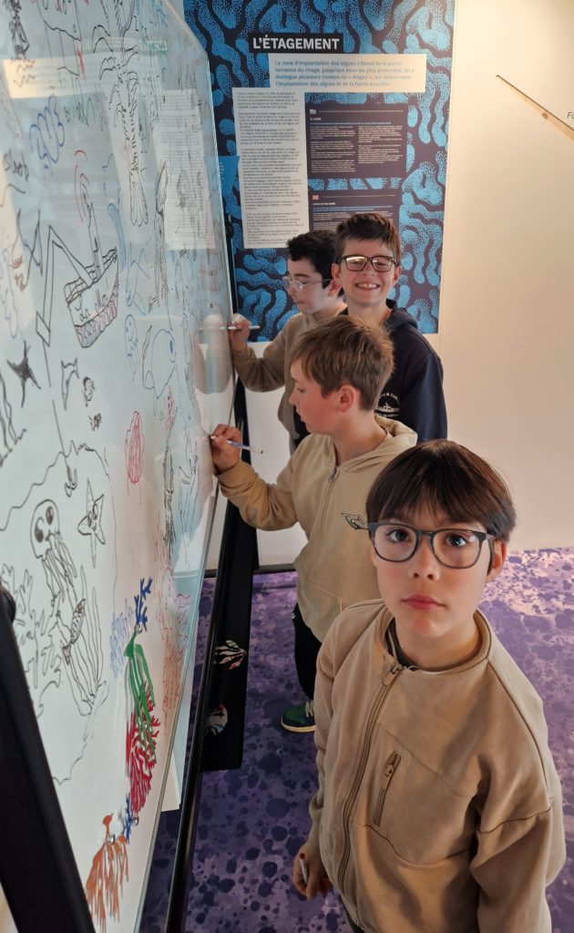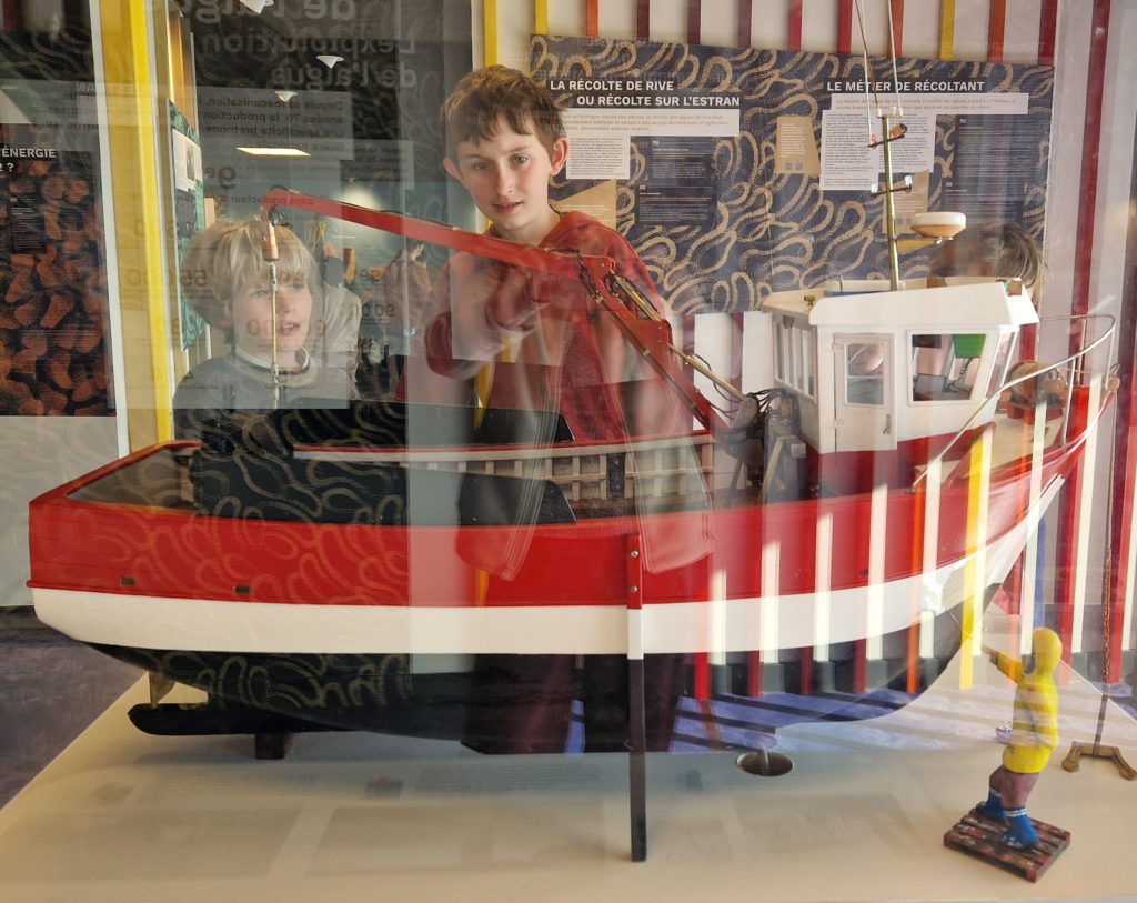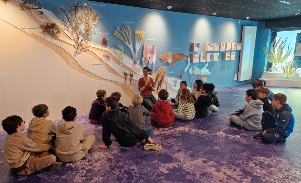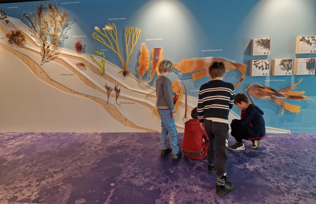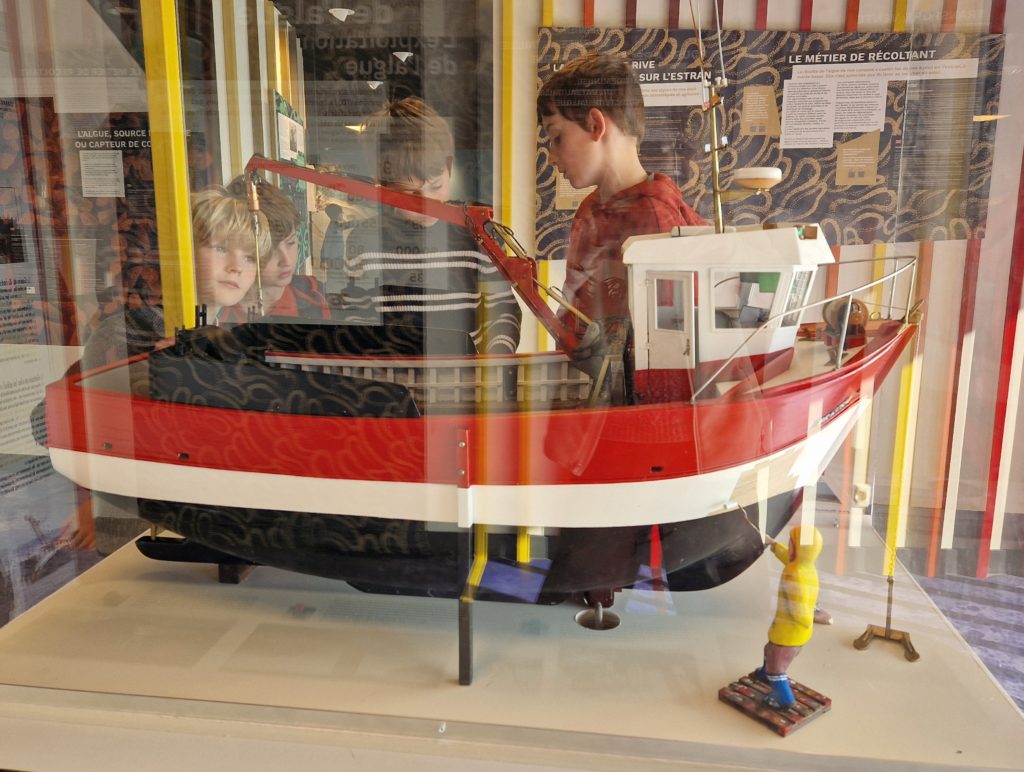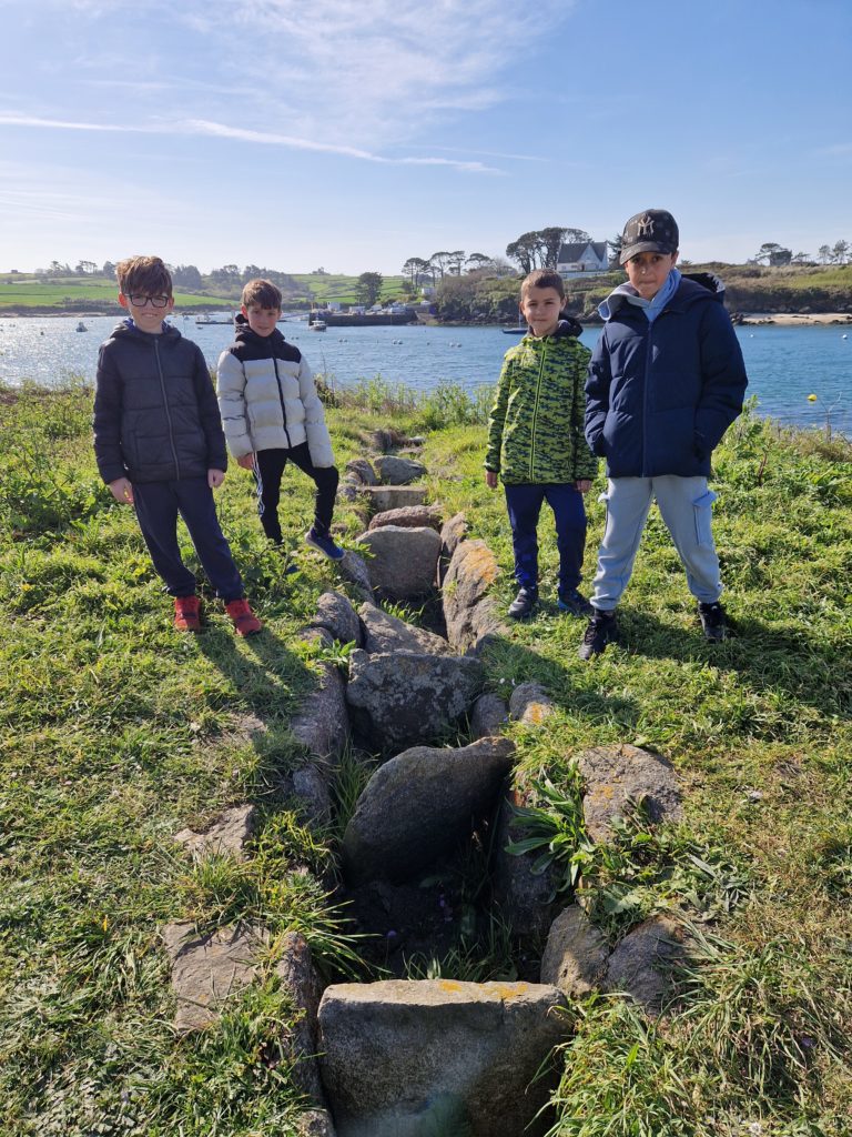 La visite s’est déroulée en deux temps : un jeu de piste à l’intérieur de la Maison de l’algue en compagnie de la médiatrice scientifique, Aurélie, dans un espace magnifique entièrement rénové. Et une énigme à résoudre avec l’aide des parents accompagnateurs, en arpentant le sentier côtier jusqu’au canon et au corps de garde où se tenaient les canonniers qui surveillaient la mer d’Iroise au XVIIIème siècle.
