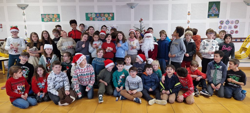 Malgré son emploi du temps surchargé, le Père Noël a réussi à venir à l’école vendredi 19 décembre pour le goûter de Noël.