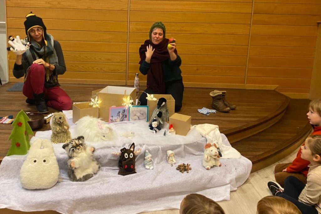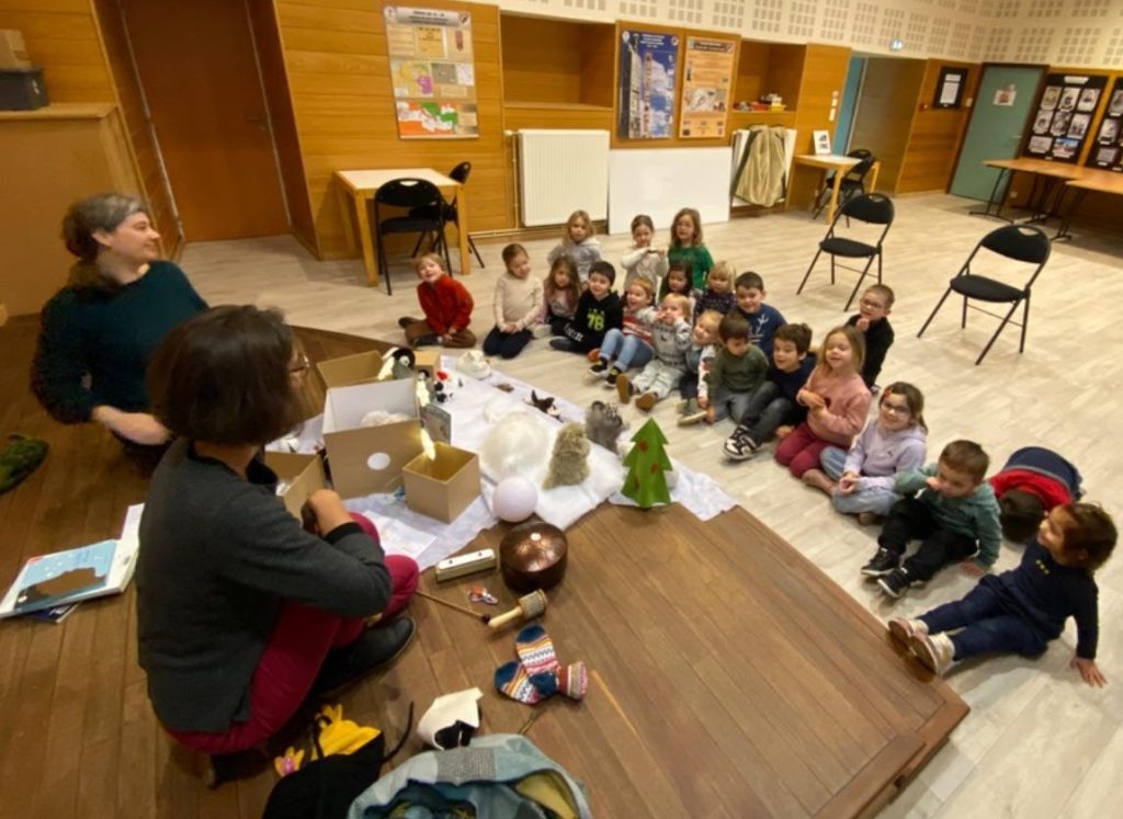 La médiathèque de Plouarzel nous a accueillis avant les vacances pour une animation de Noël : livres lus avec des marottes, des accessoires, des chants et du théâtre ! Moment magique pour les enfants !
